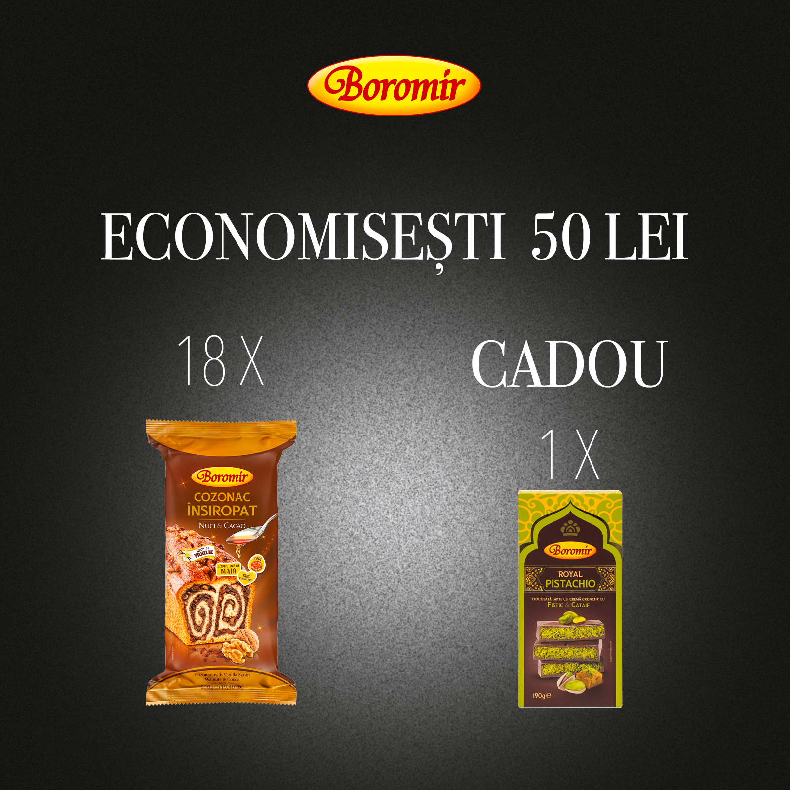 Pachet (2BAX- 18BUC*COZONAC INSIROPAT NUCI SI CACAO 550G + 1*CIOCOLATA ROYAL PISTACHIO 190G CADOU)